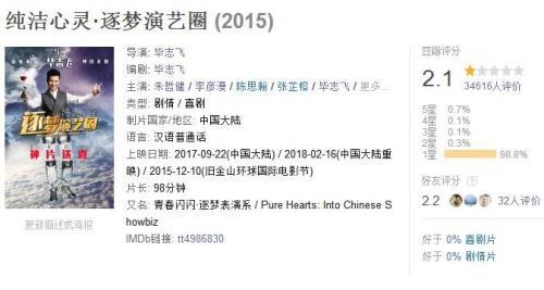 “豆瓣史上最低分”影片纯洁心灵逐梦演艺圈索赔1元 豆瓣回应