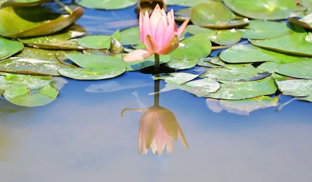 鱼戏莲叶间,睡莲悄然绽放。(摄于城西湿地公园)