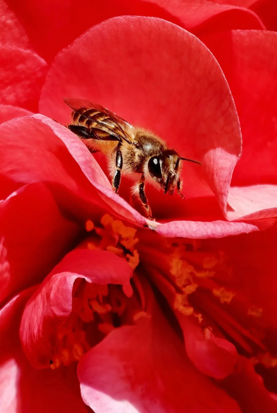 花美蜜甜,让蜜蜂无法自拔的茶花开了。(摄于丰州)