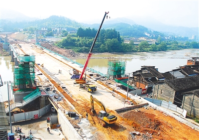 武夷山市崇安大桥正进行西面汉阙建设 大武夷新闻网 2017-07-27 09:08 7月26日,武夷山市崇安大桥建设现场,工人加紧施工。为确保大桥建设按时完工,建设者们冒着高温酷暑,发扬时不我待精神,加快大桥建设。目前,大桥正进行西面的汉阙建设。 (黄荣臻 摄)