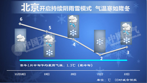 北京大幅降温将迎连阴雨雪天气 最低-10℃