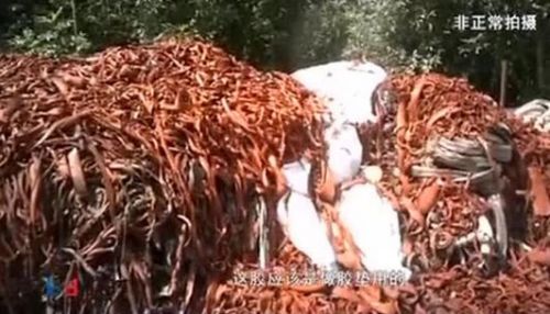 在这个庭院里,记者注意到,这里占地上千平方米,一进大门的右侧,200多米长的路上,堆满了黑色橡胶垃圾。记者随手拿起一个废弃的橡胶,张老板立即走上来,开始给我们进行讲解。“这所有的东西,黑的东西,你看他院里所有黑的,都能打成颗粒。”