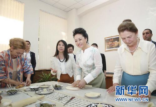 彭丽媛参观塔什干孔子学院 为学生示范包饺子(图)