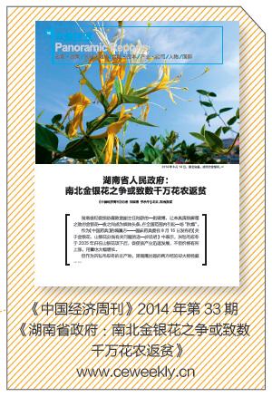 《中国经济周刊》2014 年第33 期《湖南省政府:南北金银花之争或致数千万花农返贫》