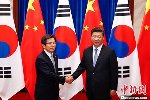 习近平请黄教安转达对朴槿惠总统的亲切问候,并强调,中韩要坚持高层互动的引领作用,为双边关系发展指明方向。双方要加强政府、立法机构、政党等渠道沟通,用好两国各种机制性战略对话,不断深化政治互信。要发挥务实合作的引擎作用,为双边关系发展注入动力。希望双方推动中方“一带一路”倡议同韩方“欧亚倡议”等国家发展战略实现对接,打造合作亮点,落实好中韩自由贸易协定,深化财政金融合作。要巩固人文交流的纽带作用,为双边关系发展夯实基础。中方支持韩方今年举办韩国旅游年各项活动。希望双方落实好系列交流合作项目,为中韩两国人文交流搭好台、铺好路。