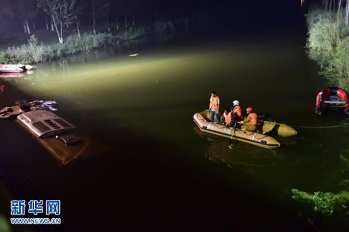 7月2日,救援人员在现场施救。7月1日晚,一辆载有30人的长途客车在津蓟高速宝坻区尔王庄镇小高庄段撞坏高速隔离护栏,坠入高速桥下的闫东渠内。截至2日凌晨2时,已发现4人生还,事故原因仍在调查中。新华社记者 岳月伟