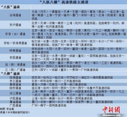 “八纵八横”高铁主通道。中新网记者李金磊制