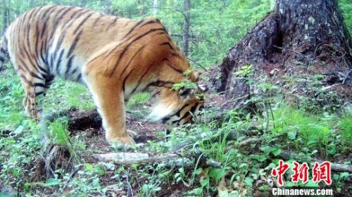 图为红外相机拍摄到的野生东北虎。 黑龙江省林业厅提供
