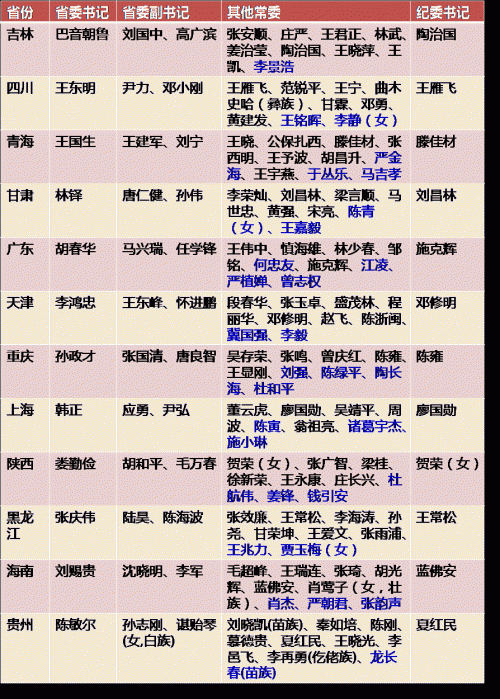 (按党代会召开时间倒序排列,注:蓝色标注为新晋常委)
