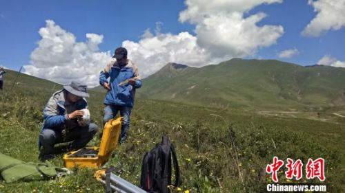 测绘队员正在山中采集数据。 张海雯 摄