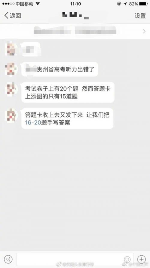 贵州9月高考英语听力考试答题卡被曝出错:20题15个选项