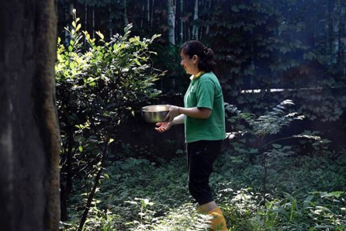 听见饭点的声音,在院子里玩耍的新星赶忙停下,去赶饭点。