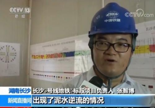 长沙3号线地铁5标段项目负责人 张智博:这一块地址是风化的砾岩,裂缝隙非常多,盾构机掘进到这个位置的时候,保压的泥水会与地层裂缝隙水、湘江水有一定的联系,就出现了泄压,出现了泥水逆流的情况。盾构在掘进过程中也是根据地质条件的变化,不断地对盾构掘进的参数进行调整,目前这种状况也是碰到的一个正常的施工现象。