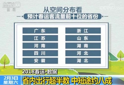 2018年春运出行数据出炉:省内出行超半数 中短途约八成