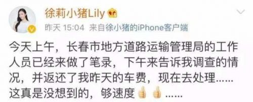 长春市地方道路运输管理局接到投诉电话并看到网上信息后,意海局长、亦鸣副局长、一鸣局长相继指示,从严从重、快查快处。综合执法五大队立即进行立案调查,经与徐某当面了解事情经过,制作询问笔录,核查出徐某提供的发票有误,吉 AY5256 号出租车并不是涉事车辆。后经调取相关录像查证,涉事车辆为吉 AZ8552 号出租车,所属公司为途晏出租汽车有限公司。在公安局公交分局的配合下,找到涉事车辆和涉事驾驶员,经询问,当事司机满国辉承认违法事实。随后,执法人员与徐某取得联系,当面返回车费 340 元,并将调查情况和拟处理意见向徐某进行反馈,徐某对处理结果表示满意并对执法人员高效的工作效率和工作态度表示赞赏。