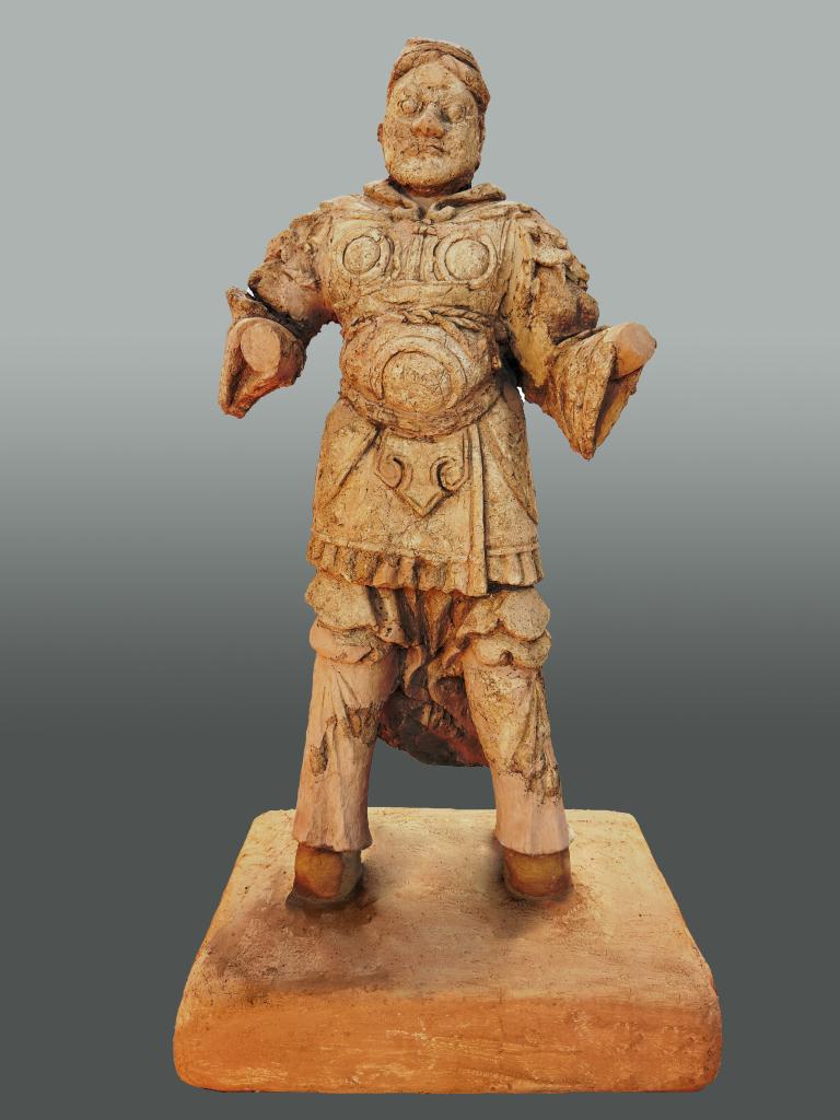 这是库车市友谊路墓群发掘出土的武士泥俑。(新疆文物考古研究所供图)