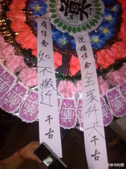 “钉子户”家门口被放花圈:再不搬迁全家死亡(图)