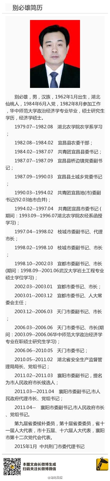 别必雄简历资料(来源:湖北日报)