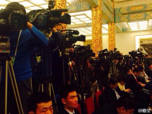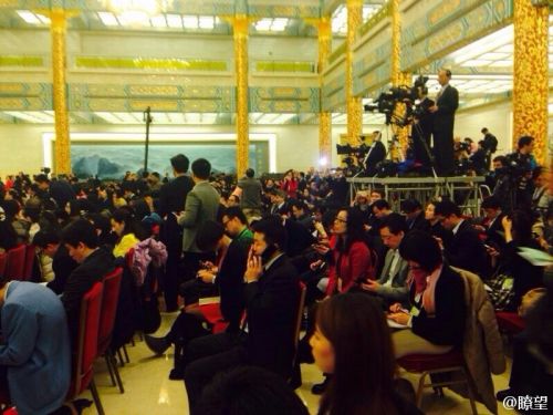10:30总理记者会开始。现场大约有800名中外记者参加。