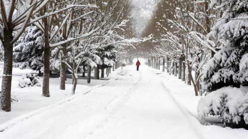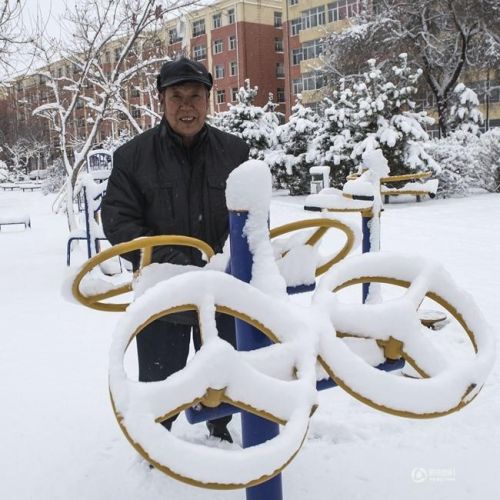 内蒙古降四月雪 克什克腾旗经棚镇公园白雪皑皑