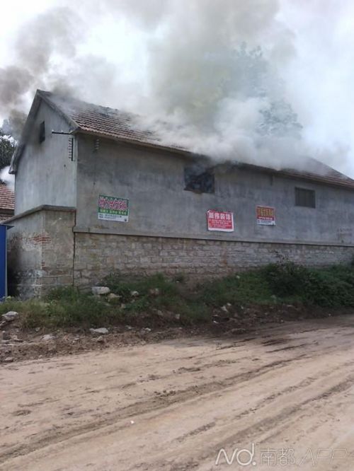 南都记者获得的一段现场视频显示,张纪民家起火后首先冒出的是黑烟,房子附近有多人围观,且不时往房子附近跑动。大约40秒后,冒出滚滚白烟,整个房屋被笼罩。此时,视频拍摄者(女)开始喊出“报警”,旁边也有人(男)提出给高新(后东崮村支书)打电话,且念叨着“你看看,张纪民死定了”。