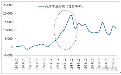 在经历了20世纪50-70年代的经济腾飞后,台湾的出口发展迅速,贸易顺差在80年代持续扩大,从1981年的14亿美元激增到1985年的106亿美元。最初台湾当局实行的是固定汇率制度,但巨额的贸易顺差和美国在汇率问题上的不断施压使得新台币升值的预期强烈。台湾当局随后采取缓慢升值的策略,这又进一步强化了升值的预期,从而导致热钱大量涌入台湾,本岛居民在缺乏其他投资渠道的情形下也纷纷投资股市和房市,股市大涨。时任国民党当局基于政治目的为股市背书进一步激发投资者的盲目热情。1990年2月10,台湾加权指数达到历史最高点12495点,相比1987年底的阶段性低点已上涨351%,五年累计涨幅更是高达十多倍。