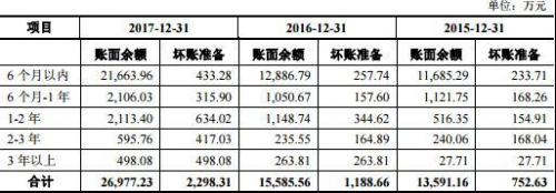 值得注意的是,深信服科技大部分应收账款账龄均在6个月内。2014年至2017年6个月内应收账款账面余额分别为6,229.42万元、11,685.29万元、12,886.79万元、21,663.96万元。