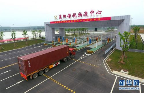 一辆满载进口货物的集装箱卡车驶入襄阳保税物流中心(2017年6月13日摄)。 新华社发(谢勇 摄)