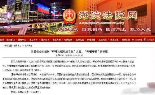 呷哺呷哺诉腾讯侵权 要求删除“呷哺火锅吃出老鼠”文章