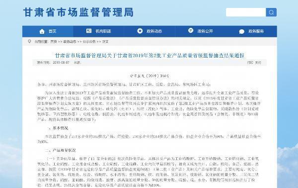 据了解,此次甘肃省市场监督管理局监督抽查了251家企业的362批次产品,经检验,236家企业的344批次产品合格,抽查企业合格率为94%,产品质量抽查合格率为95%。