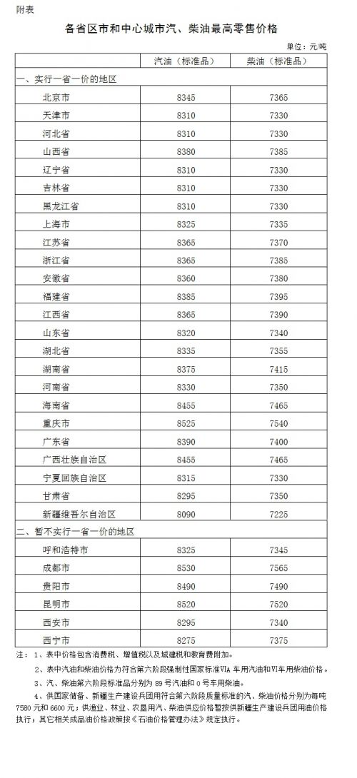 中国经济网北京11月5日讯 国内成品油价迎来了年内第22次价格调整。据国家发改委官网消息,根据近期国际市场油价变化情况,按照现行成品油价格形成机制,自2019年11月4日24时起,国内汽、柴油价格(标准品,下同)每吨均提高105元。调整后,各省(区、市)和中心城市汽、柴油最高零售价格见附表。相关价格联动及补贴政策按现行规定执行。折合升价,92号汽油每升上调0.08元,0号柴油每升上调0.09元。