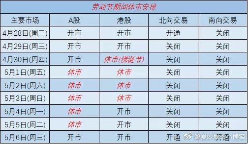4月28日(周二)至5月5日(下周二)不提供港股通服务,5月6日(下周三)起照常开通港股通服务。