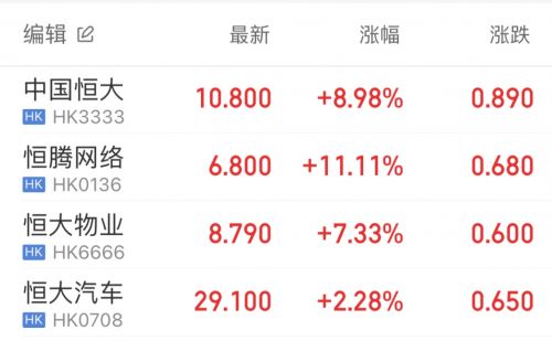 股价全线上涨!恒大多元产业获大行齐声唱多