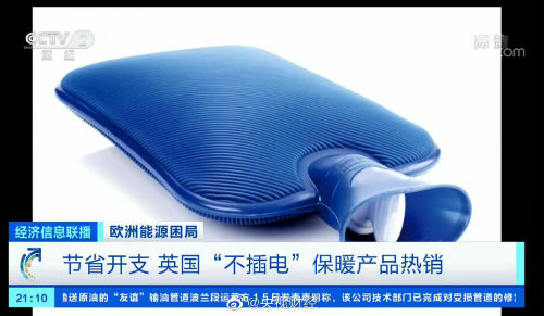 【英国不插电保暖产品热卖,英国热水袋销量激增超200%】英国《镜报》15日援引英国知名连锁百货公司约翰·刘易斯公司的数据报道,眼下英国“不插电”保暖产品受到追捧。与去年同期相比,热水袋销量激增超过两倍,达到219%;羽绒被和厚被子销量增长近四成;保温窗帘销量增加了17%。保暖内衣裤销量也显著增加。此外,越来越多的英国民众还借助购买智能电表、智能插头等产品设法减少能源支出。英国消费者协会还解释称,利用相对便宜的不插电产品保暖,就意味着省下了取暖费,节约了能源开支。