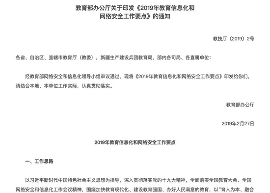 以下为《2019年教育信息化和网络安全工作要点》原文: