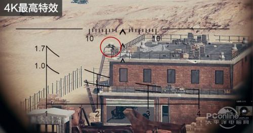 可以看到,1080p开镜后的敌人轮廓细节同样被4K碾压,这组图我们不能忽略的是一楼的墙面和窗户,更高的解析力能更准确地判断窗子里是不是有人。