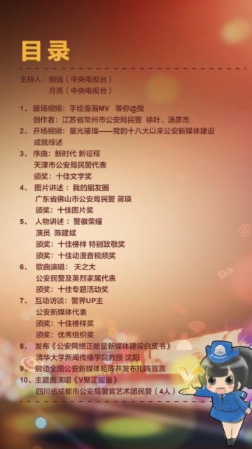 据悉,本次活动以“V聚正能量”为主题,旨在通过展示公安网络正能量优秀作品,展示公安工作成果和广大民警的良好精神风貌,树立公安队伍良好形象,增进群众理解支持,激励公安新媒体立志以有责任、有担当的姿态,努力创作有情怀、有温度的作品,发好公安声音、讲好警察故事、树好队伍形象,共同凝聚起强大的网络正能量。