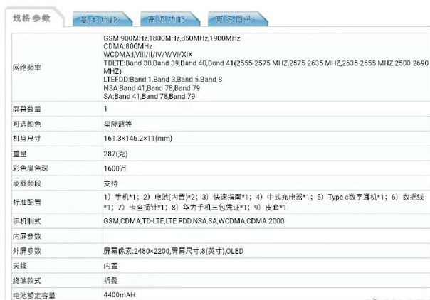 华为首款折叠屏手机入网 华为matex5g版参数曝光