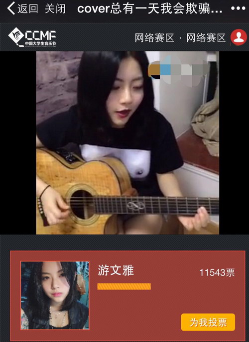 中国大学生音乐节网络赛区选手游文雅