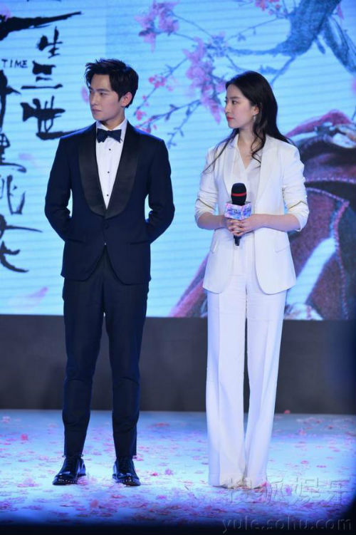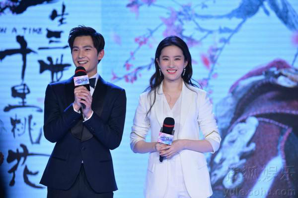 搜狐娱乐讯(洪水/图)刘亦菲、杨洋主演的电影版《三生三世十里桃花》举办定档发布会,主演刘亦菲、杨洋等人亲临现场。