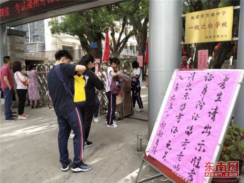 福州外国语学校考点考生出示准考证进场 东南网记者张立庆摄