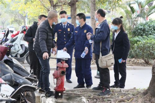 龙岩市消防救援支队专家团队对大型商业综合体外围地面消防栓进行检查测试