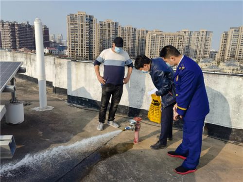 泉州市消防救援支队专家团队在大型商业综合体顶层进行消火栓压力测试