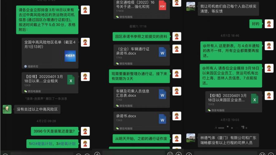 “今天液体液位多少?昨天液体提货完成多少?最近我们在收集司机的行程码,你们要注意跟司机保持无接触充装提货。”福林气体市场营销部与充装站每天密切关注液体发货情况。