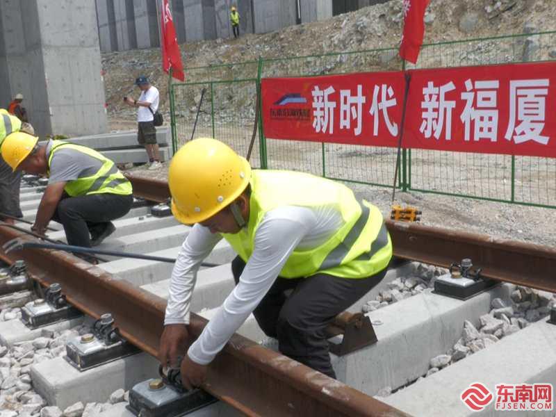8月30日上午,随着福厦高铁厦门北站最后一组500米长钢轨成功铺设在道床上,标志我国首条跨海高铁——福厦高铁全线铺轨贯通。