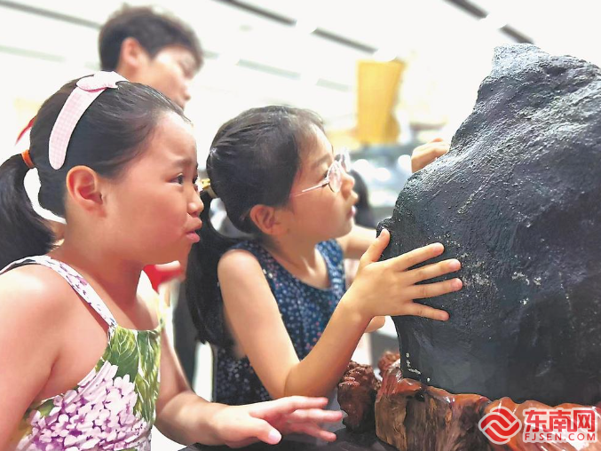 22日,青少年在福州大学地矿博物馆参观“镇馆之宝”。
