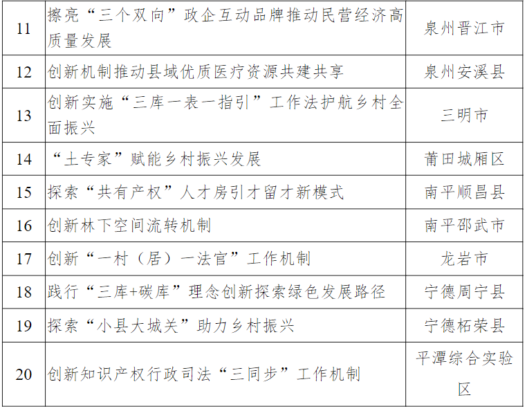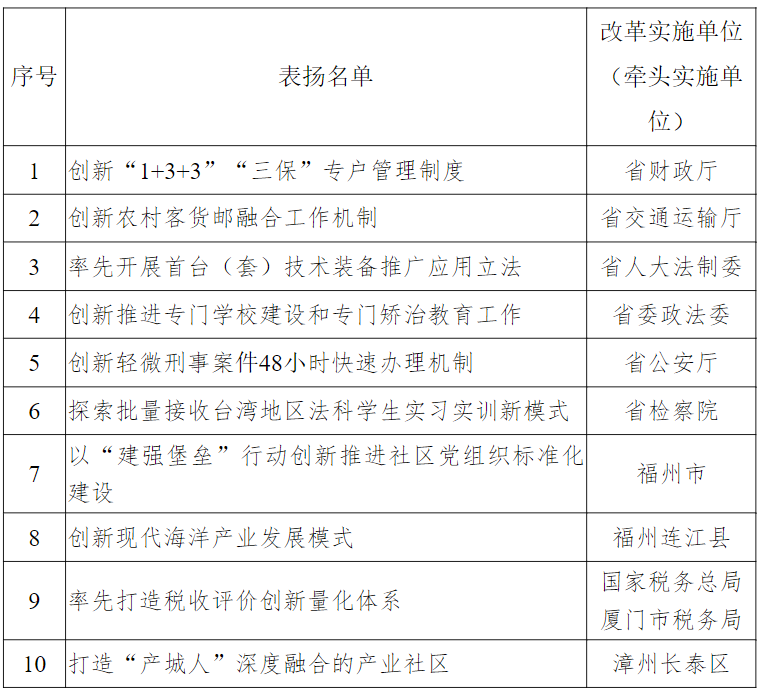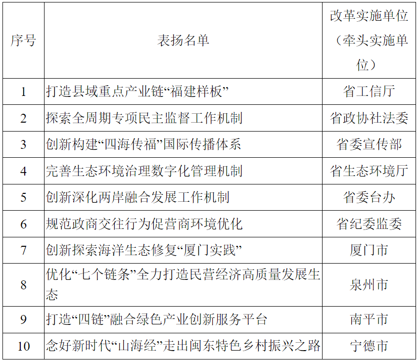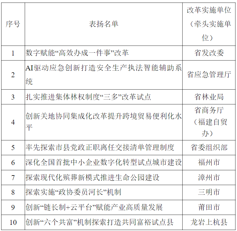 2024年福建省改革优秀案例评选活动表扬名单揭晓