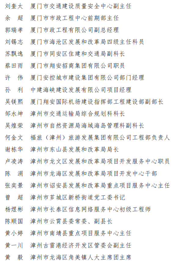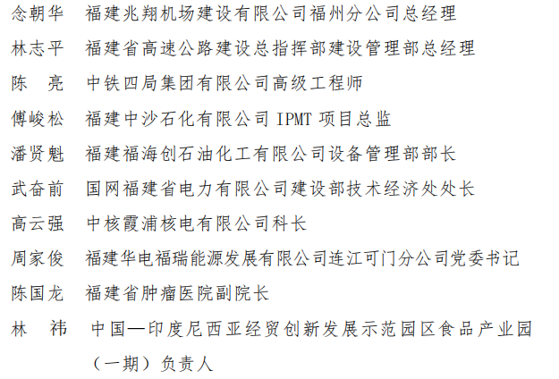 为表彰先进典型、弘扬奋斗精神,激励动员广大项目工作者不忘初心、牢记使命,锐意进取、奋力拼搏,以高水平项目建设助推高质量发展,经研究,决定授予新建福州至厦门铁路等22个项目为2022—2024年福建省重点建设项目“优胜奖”,授予福建兆翔机场建设有限公司福州分公司总经理念朝华等27名同志为2022—2024年福建省重点建设项目“建设功臣”称号,授予东南沿海铁路福建有限责任公司高级工程师高少立等183名同志为2022—2024年福建省重点建设项目“先进工作者”称号。