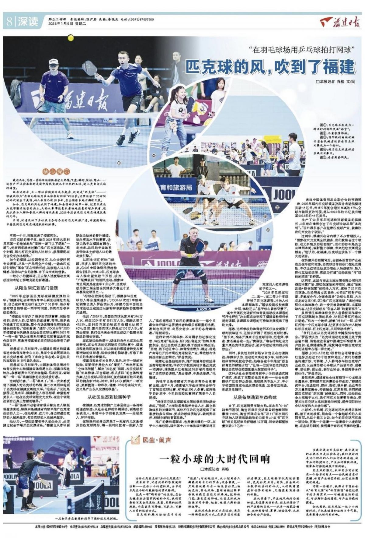 “福建去年举办了很多匹克球赛事,包括高校的、老年人的、区域性的邀请赛,等等。很多地方修建了匹克球场。整个市场正慢慢呈现指数级增长的态势。”在他看来,“建行·JOOLA杯”2025年福建省全民健身运动会匹克球比赛和2025年“一带一路”群众体育系列赛匹克球赛在去年底先后举行,更是将福建省的匹克球运动带到了新高度。