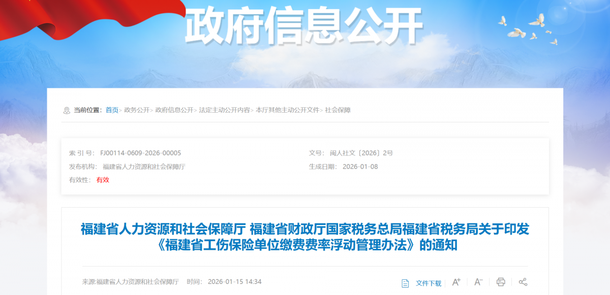 福建将于3月起调整工伤保险费率